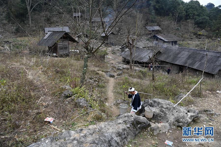 廣西南丹縣里湖瑤族鄉(xiāng),村民從水柜挑水回家(2018年1月12日攝)。廣西有近一半貧困人口生活在石漠化地區(qū),涉及數(shù)十個縣區(qū)。這里也是廣西飲水保障程度最低的地區(qū),解決貧困人口飲水問題是廣西脫貧攻堅戰(zhàn)“硬仗中的硬仗”。“十三五”以來,廣西加快實施農(nóng)村飲水安全鞏固提升工程。因地制宜,采取新建、擴建及管網(wǎng)延伸等多種措施,補齊貧困地區(qū)水利薄弱短板,進一步提升石漠化地區(qū)群眾飲水安全保障水平,助推脫貧攻堅。新華社記者周華攝