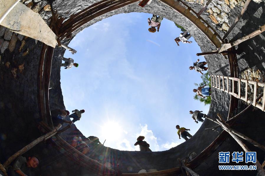 在廣西都安瑤族自治縣龍灣鄉(xiāng)龍煥村大朋屯,當(dāng)?shù)厝罕娫谛藿ㄋ瘢?019年7月23日攝)。廣西有近一半貧困人口生活在石漠化地區(qū),涉及數(shù)十個縣區(qū)。這里也是廣西飲水保障程度最低的地區(qū),解決貧困人口飲水問題是廣西脫貧攻堅戰(zhàn)“硬仗中的硬仗”?!笆濉币詠恚瑥V西加快實施農(nóng)村飲水安全鞏固提升工程。因地制宜,采取新建、擴建及管網(wǎng)延伸等多種措施,補齊貧困地區(qū)水利薄弱短板,進一步提升石漠化地區(qū)群眾飲水安全保障水平,助推脫貧攻堅。新華社記者陸波岸攝