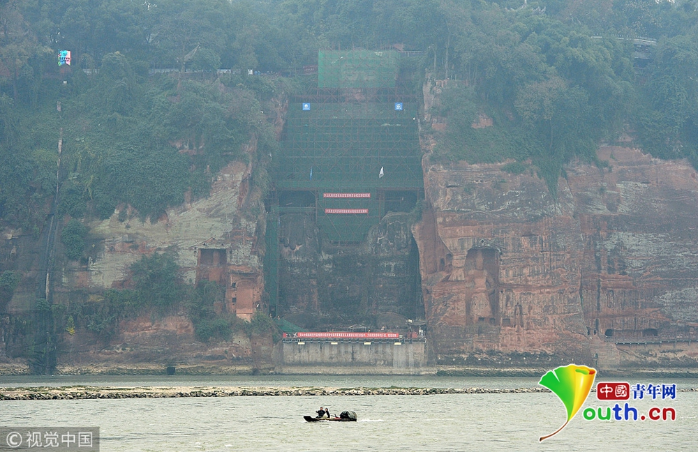 12月10日前后已逐步遮蔽大佛頭部,對(duì)頭面部進(jìn)行勘測(cè);12月底將開始拆除頭部腳手架,保證2019年元旦節(jié)之前,先露出佛頭,供游客觀賞。