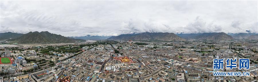 8月10日無人機拍攝的拉薩市(拼接照片)。