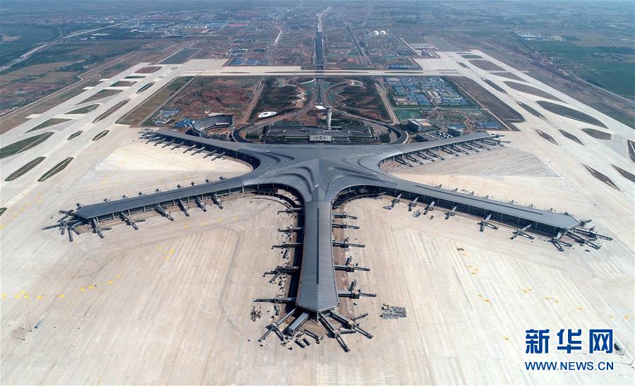 2019年6月12日無人機拍攝的建設(shè)中的青島膠東國際機場。新華社記者李紫恒攝
