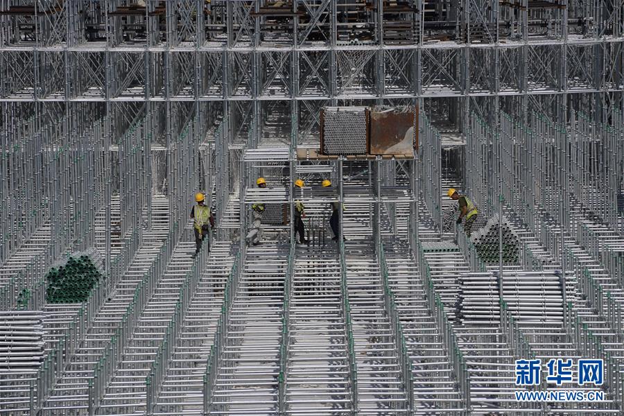 10月10日,工人在雄安站施工。新華社記者邢廣利攝