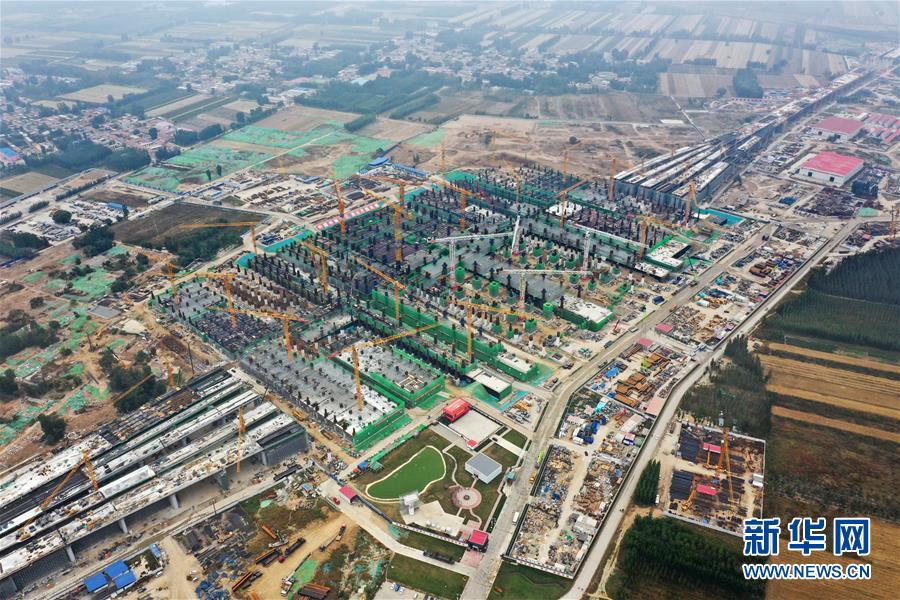 建設(shè)中的雄安站(10月10日無(wú)人機(jī)拍攝)。