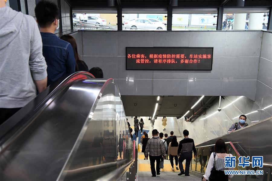 3月18日晚高峰時段,在深圳地鐵車公廟站進站通道,電子屏幕提醒乘客車站正在進行客流管控。近期,隨著復(fù)工復(fù)產(chǎn)的持續(xù)推進,深圳地鐵出現(xiàn)早晚客流高峰。為避免客流聚集擁擠,深圳地鐵對11座大客流站點實施常態(tài)化客流管控,對17座重點車站采取視情況客流管控。在高峰時段,乘客進入大客流站點需通過站外護欄繞行,分批、間隔、有序進站,使用深圳通卡乘車還需掃描二維碼進行實名登記。新華社記者梁旭攝