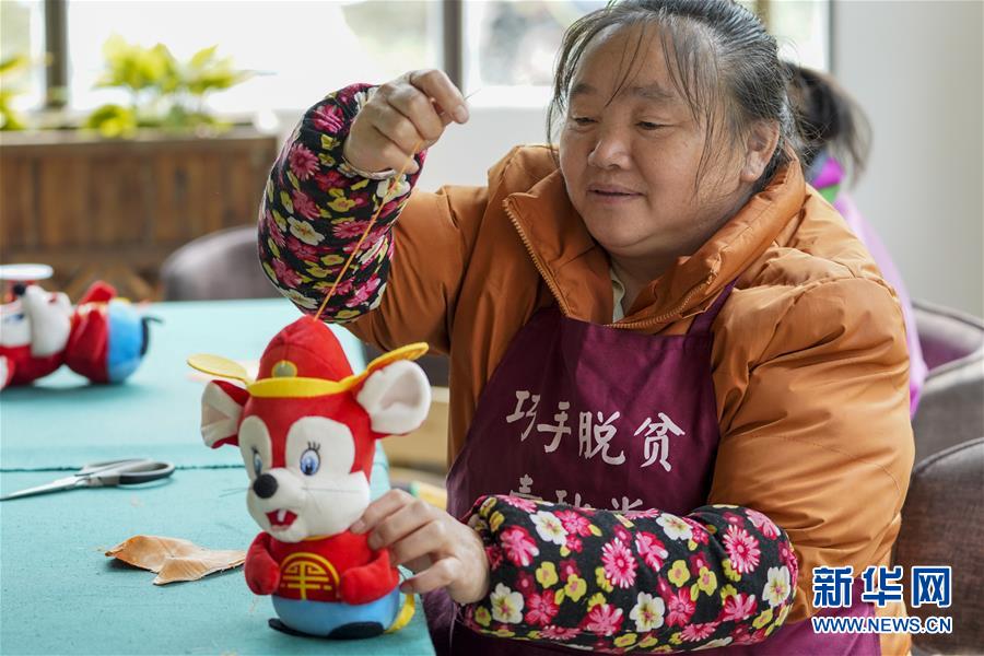 4月8日,在重慶石柱中益鄉(xiāng)巾幗扶貧工坊,一名當(dāng)?shù)貗D女在縫制文創(chuàng)產(chǎn)品。近年來,重慶市石柱土家族自治縣中益鄉(xiāng)在重慶市婦聯(lián)的幫助下,以當(dāng)?shù)胤沁z傳統(tǒng)技藝作為結(jié)合點(diǎn),把扶貧與扶志、扶智相結(jié)合,通過引進(jìn)外來文創(chuàng)企業(yè)對(duì)留守婦女、貧困及殘疾人群進(jìn)行刺繡培訓(xùn),設(shè)立巾幗扶貧工坊等多種形式,幫助當(dāng)?shù)卮迕駥?shí)現(xiàn)就業(yè)增收。據(jù)介紹,巾幗扶貧工坊運(yùn)行以來,為當(dāng)?shù)仃懤m(xù)開發(fā)出土家族布老虎、手提袋、餐墊繡邊、創(chuàng)意相框等一系列文創(chuàng)產(chǎn)品,幫助參加巾幗扶貧工坊的留守婦女和貧困村民實(shí)現(xiàn)月均增收近千元。新華社記者劉潺攝
