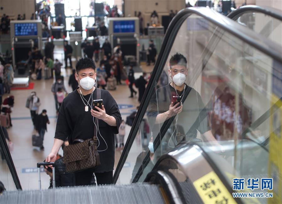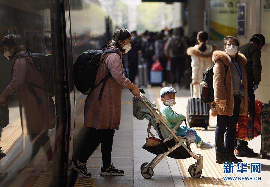 4月8日,乘客在漢口火車站進站乘車。新華社記者肖藝九攝