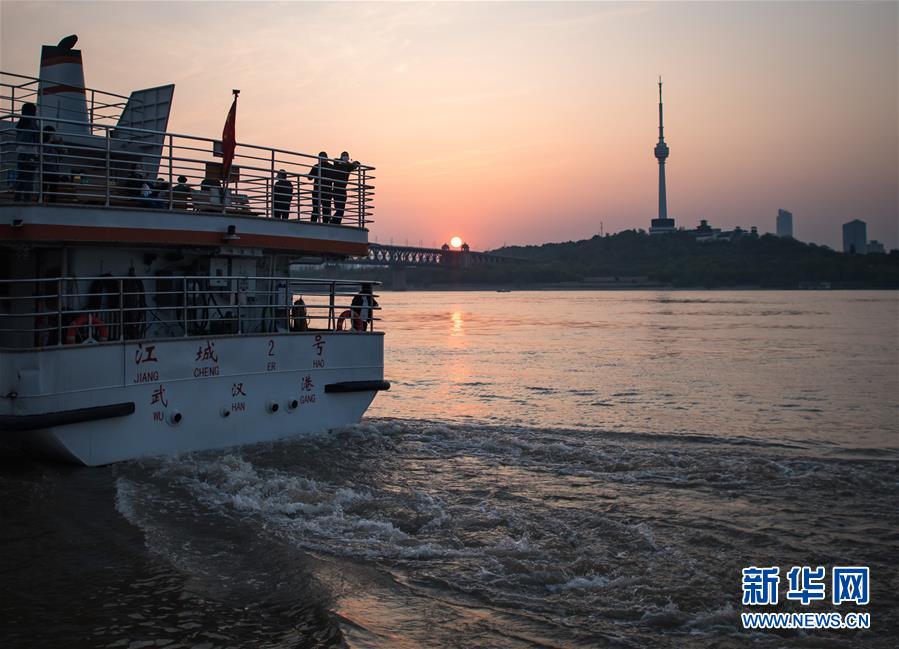 4月14日拍攝的武漢長江二橋附近夜景。新華社記者才揚攝