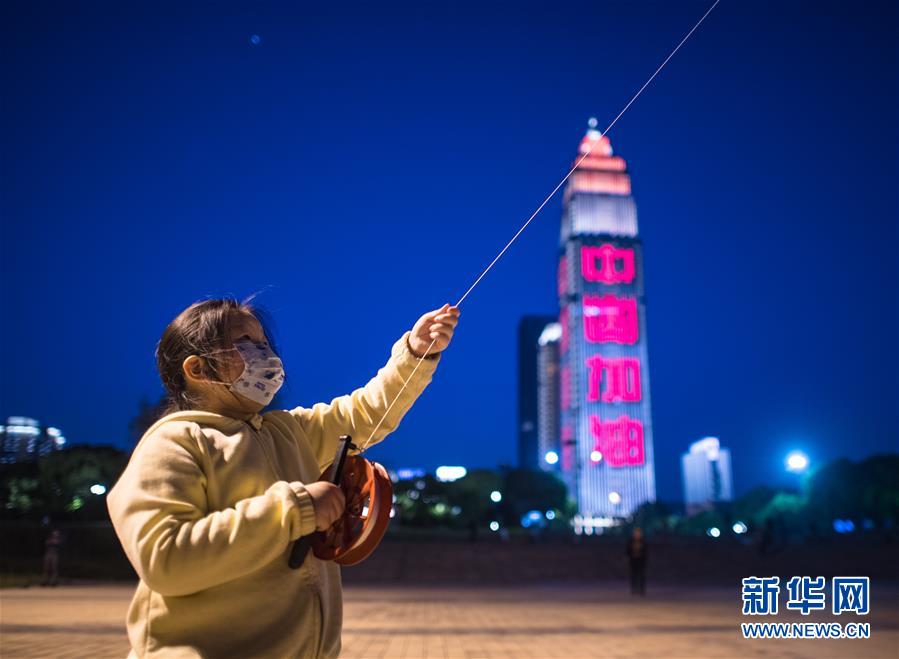 這是4月7日晚在武漢龜山拍攝的夜景(無人機照片)。新華社記者肖藝九攝