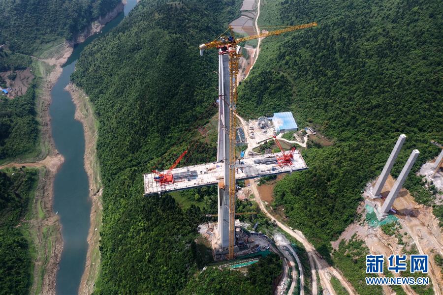 這是建設(shè)中的遵余高速湘江大橋(4月26日攝,無人機(jī)照片)。近日,由中鐵廣州局承建的貴州遵余高速湘江大橋工程在做好疫情防控的同時(shí),全力恢復(fù)生產(chǎn)建設(shè)。目前工程進(jìn)展順利,正在進(jìn)行主橋鋼梁架設(shè),預(yù)計(jì)將于8月底合龍。據(jù)了解,遵余高速湘江大橋橋梁全長1700余米,主跨560米。新華社記者劉續(xù)攝