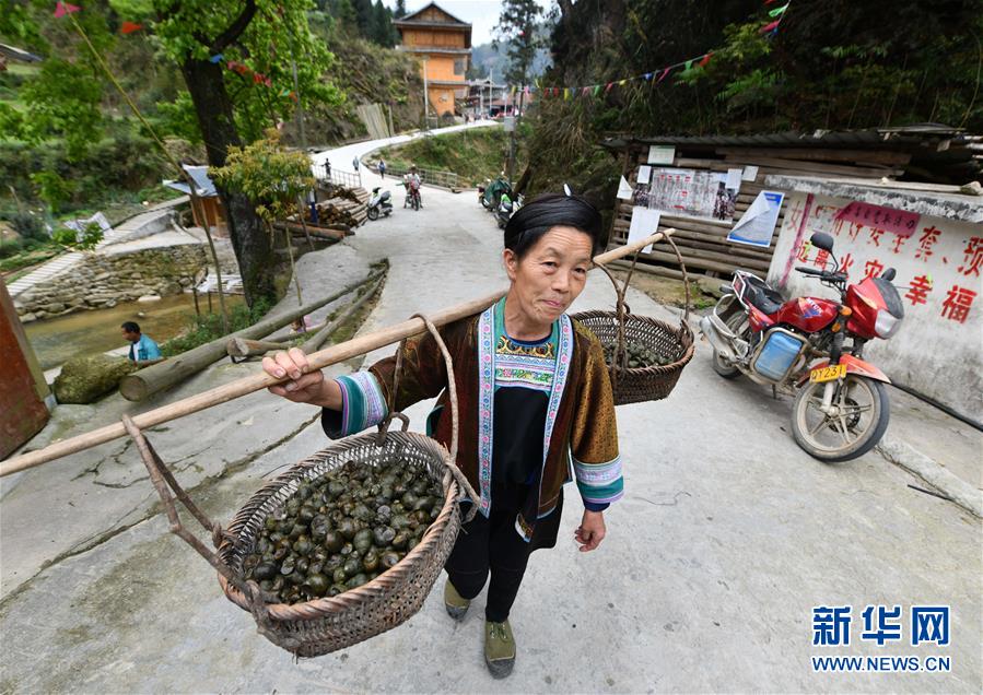 當(dāng)日,廣西融水苗族自治縣扶貧部門將11000斤螺苗送到桂黔烏英苗寨,免費(fèi)發(fā)放給34戶脫貧戶和貧困戶。烏英苗寨位于桂黔交界的大苗山深處,共有140戶600多人,其中100戶屬廣西柳州市融水苗族自治縣桿洞鄉(xiāng)黨鳩村,40戶屬貴州省從江縣翠里瑤族壯族鄉(xiāng)南岑村。這里交通不便,土地資源匱乏,自然環(huán)境惡劣,是一個貧困的苗寨。
