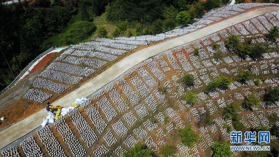 這是4月26日拍攝的劍河縣關口萬畝生態(tài)農(nóng)業(yè)示范基地培育的木耳(無人機照片)。近年來,貴州省黔東南苗族侗族自治州劍河縣充分利用林下土地培育木耳,既不耽誤林木生長,又發(fā)展了食用菌產(chǎn)業(yè)。目前,該縣采取“龍頭企業(yè)+合作社+貧困戶”的合作模式,大力推廣林下木耳種植,帶動農(nóng)民增收。新華社記者楊文斌攝