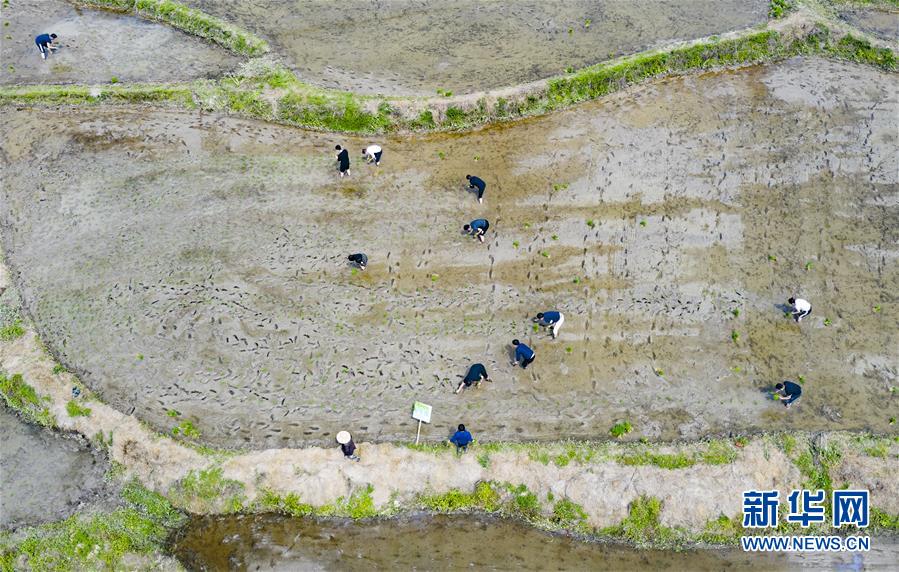 5月1日,游客在江西省新余市渝水區(qū)良山鎮(zhèn)下保村體驗農耕樂趣(無人機拍攝)?!拔逡弧奔偃掌陂g,人們以多種方式放松心情、享受假日。新華社發(fā)(趙春亮攝)