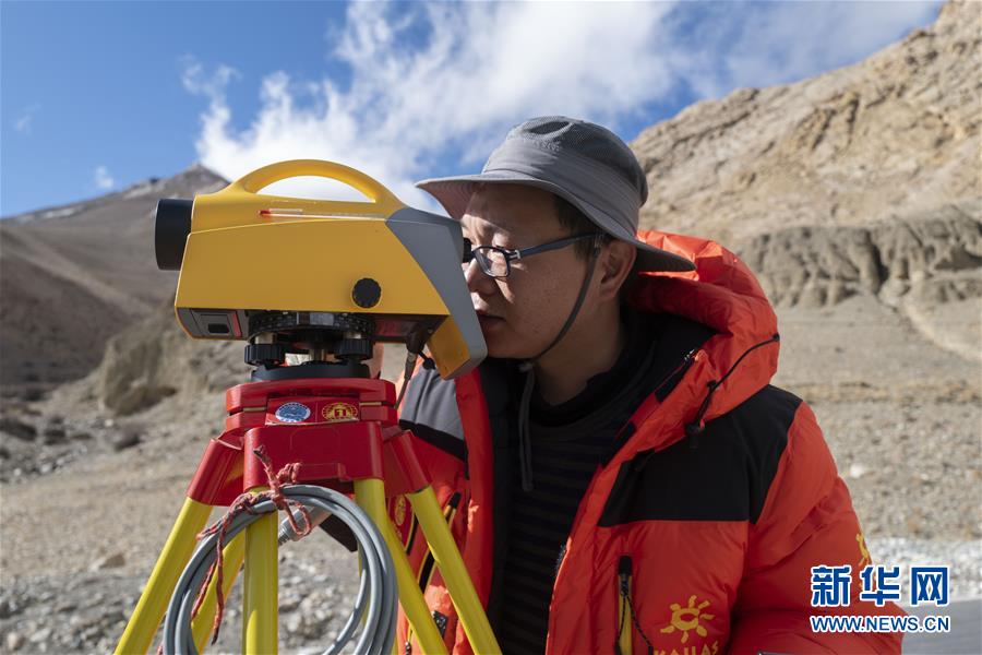 國(guó)測(cè)一大隊(duì)隊(duì)員金良在操作水準(zhǔn)儀(4月18日攝)。水準(zhǔn)測(cè)量是一種利用提供水平視線的儀器(如水準(zhǔn)儀、水準(zhǔn)標(biāo)尺),測(cè)定地面不同點(diǎn)之間的高差,并以此推算高度的一種方法,是經(jīng)典大地測(cè)量的重要技術(shù)之一。在目前正在進(jìn)行的2020珠峰高程測(cè)量中,部分國(guó)測(cè)一大隊(duì)隊(duì)員承擔(dān)了水準(zhǔn)測(cè)量的任務(wù)。新華社記者晉美多吉攝