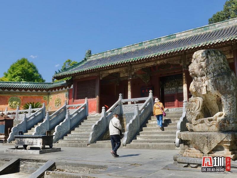 報恩寺布局結(jié)構(gòu)酷似北京紫禁城,被稱為“深山故宮”。寺內(nèi)古木參天,氣象森嚴(yán),飛檐凌空,金碧輝煌。大悲殿中的用整根楠木雕成的千手千眼觀音像、華嚴(yán)藏中的轉(zhuǎn)輪經(jīng)藏和泥塑蟠龍,以及遍布全寺的彩繪壁畫,都是世間罕見的藝術(shù)珍品。李仁奇攝