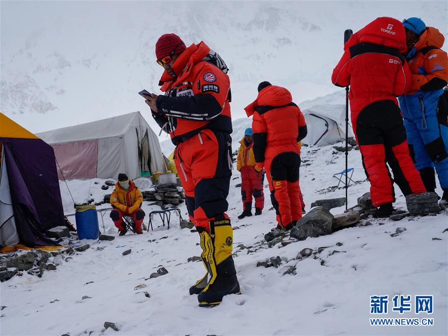 5月7日,2020珠峰高程測量登山隊(duì)在海拔6500米的前進(jìn)營地休息。新華社特約記者扎西次仁攝