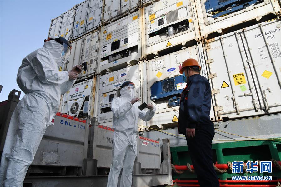 5月13日,山東威海出入境邊防檢查站民警在核對外籍船員證件。面對疫情防控要求,山東威海出入境邊防檢查站嚴(yán)密勤務(wù)組織、強(qiáng)化數(shù)據(jù)研判,加強(qiáng)口岸、碼頭的日常巡查,對國際船舶和船員強(qiáng)化監(jiān)管,全力打好疫情防輸入攻堅(jiān)戰(zhàn)。據(jù)統(tǒng)計(jì),自2月份以來,威海邊檢站共服務(wù)出入境(港)船舶400余艘次,出入境(港)人員7000多人次,為180多個集裝箱防疫物資提供通關(guān)便利。新華社記者朱崢攝