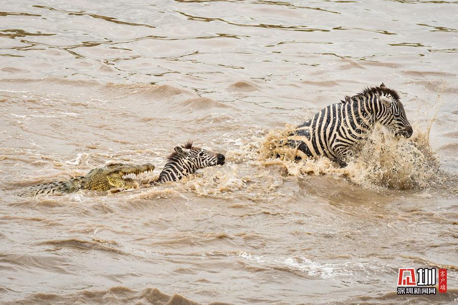 2020年5月20日報道(具體拍攝時間不詳),印度攝影師Nimit Virdi在肯尼亞賽馬拉國家保護區(qū)中親眼目睹到鱷魚獵食的震撼畫面。