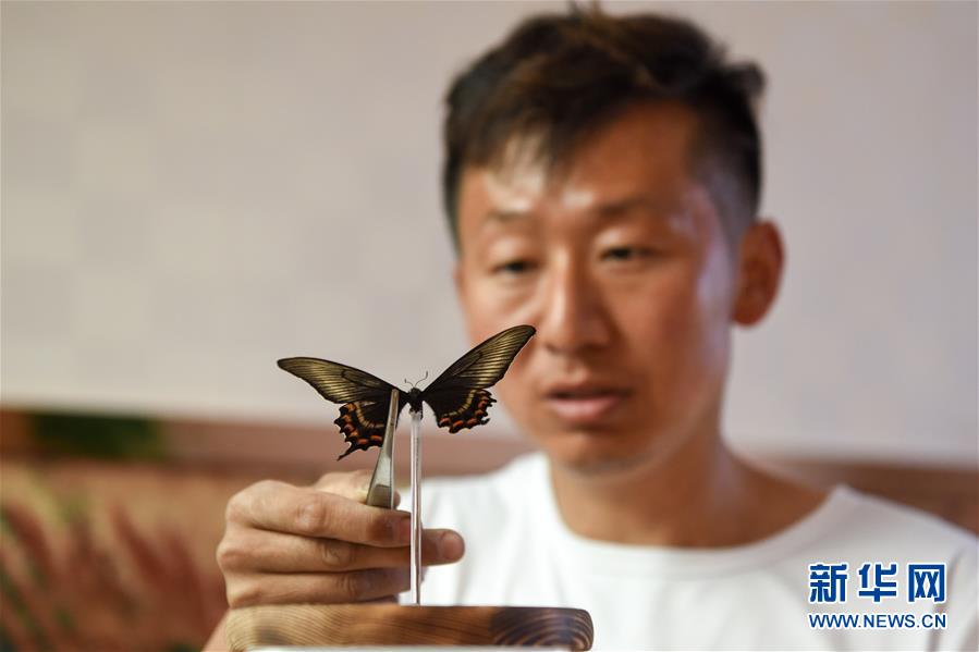 在吉木薩爾縣七彩蝶園,關(guān)富云在制作蝴蝶標(biāo)本(5月15日攝)。走進關(guān)富云的七彩蝶園,游客不僅可以近距離接觸翩翩起舞的蝴蝶,還可以欣賞蝴蝶破繭成蝶的蛻變過程。今年34歲的關(guān)富云用9年的時間實現(xiàn)了自己的“蝴蝶夢”,完成美麗的“蝶變”。關(guān)富云家住新疆吉木薩爾縣北地社區(qū)。2011年,他看到一檔農(nóng)業(yè)致富節(jié)目,萌生了養(yǎng)殖蝴蝶的想法。關(guān)富云說,當(dāng)時蝴蝶養(yǎng)殖還是一種新興產(chǎn)業(yè),他抱著試一試的想法,在海南學(xué)習(xí)了3個月蝴蝶養(yǎng)殖,帶回100多個蝶蛹在家試驗養(yǎng)殖。蝴蝶的生存周期短,在當(dāng)?shù)仞B(yǎng)殖需要克服溫度、濕度、病蟲害等問題。關(guān)富云不斷嘗試,越挫越勇,羽化成功的蝴蝶在2014年終于突破了萬只。蝴蝶的色彩艷麗,活體蝴蝶可用于婚慶、開業(yè)慶典等活動中放飛,可以取得很好的收益。但它的生命短暫,如何才能最大化蝴蝶的效益,留住它的美呢?關(guān)富云動起了心思,開始嘗試制作標(biāo)本和蝶翅畫?!昂宛B(yǎng)殖不同,做蝶翅畫是個創(chuàng)作的過程,從選擇標(biāo)本到粘貼,每一步都要突出美感。”關(guān)富云介紹,一幅色彩明艷、栩栩如生的蝶翅畫耗時多日才能完成。如今,關(guān)富云的活體蝴蝶和蝶翅畫通過線上線下銷售,產(chǎn)品還銷往北京、廈門等地。關(guān)富云的蝴蝶產(chǎn)品得到市場的認可,政府也對他給予大力支持。2019年,吉木薩爾縣在泉子街鎮(zhèn)建起蝴蝶觀賞園,吸引了不少游客到此參觀游玩。對于未來的發(fā)展,關(guān)富云信心滿滿,“我希望把蝴蝶產(chǎn)業(yè)發(fā)展到天山南北,讓人們在寒冷的冬季也能觀賞到蝴蝶,并且讓更多人參與其中,致富脫貧”。新華社記者丁磊攝