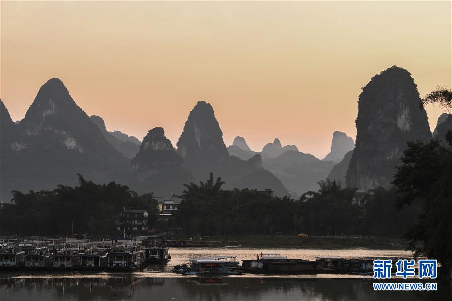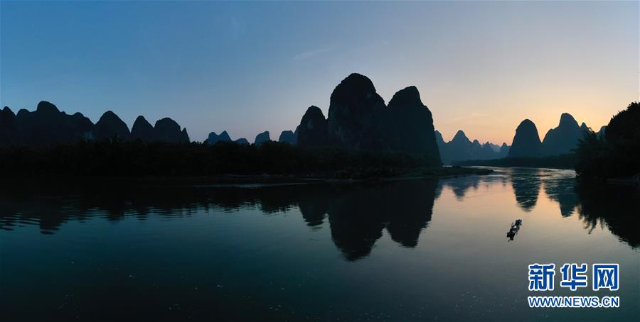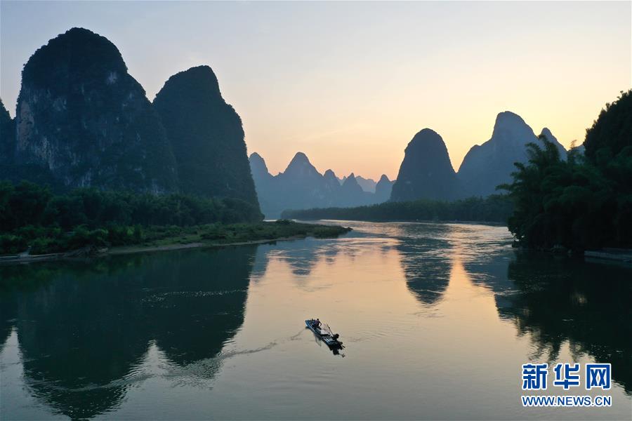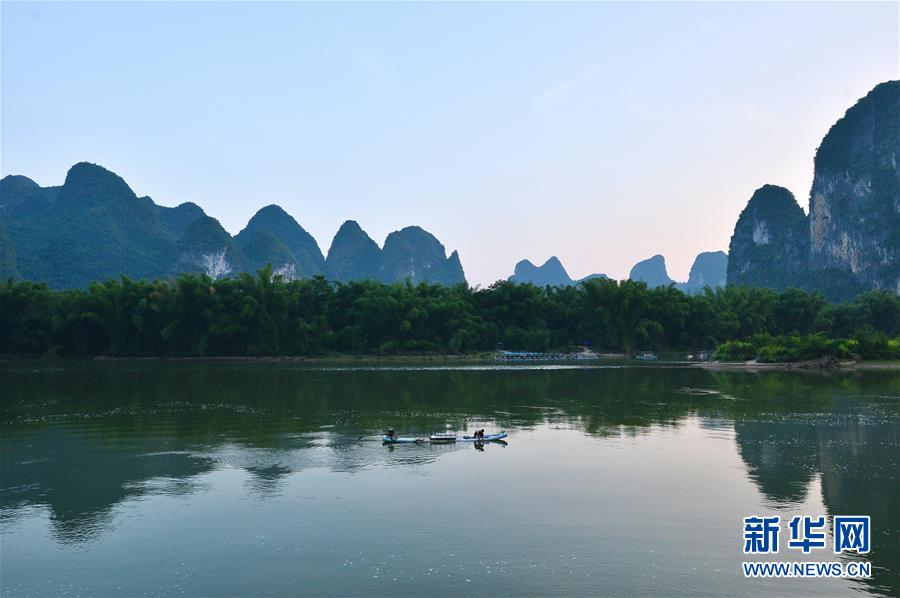 這是在廣西桂林市陽朔縣興坪鎮(zhèn)拍攝的山水風(fēng)光(5月19日攝)。“蒼蒼森八桂,茲地在湘南。江作青羅帶,山如碧玉篸……”一千多年前,唐朝詩人韓愈寫盡桂林山水之美。初夏時節(jié),在廣西桂林市陽朔縣興坪鎮(zhèn),藍(lán)天白云下,煙雨朦朧中,桂林山水盡顯秀美。新華社記者 曹祎銘 攝