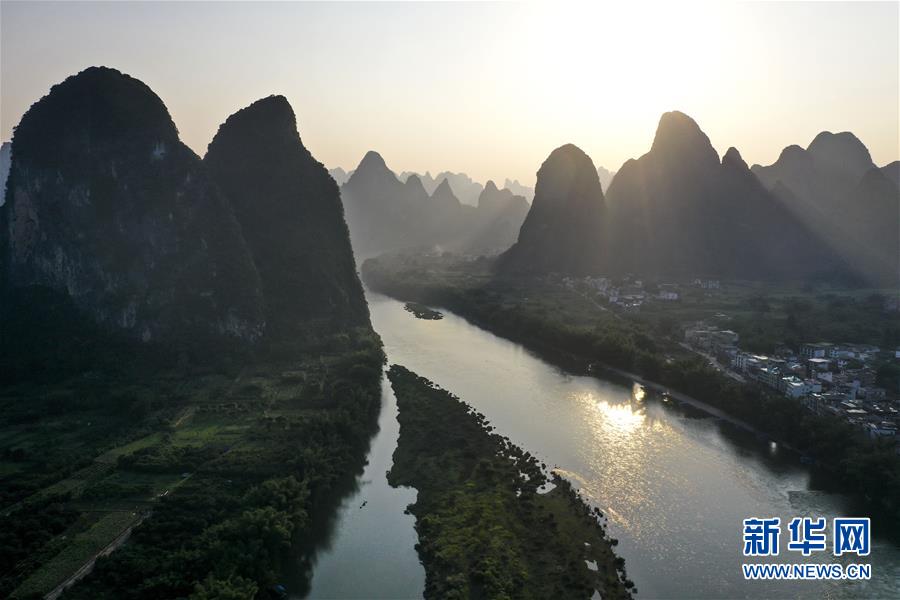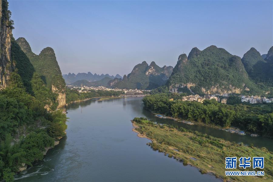 這是在廣西桂林市陽朔縣興坪鎮(zhèn)拍攝的山水風(fēng)光(5月19日攝,無人機(jī)全景照片)?!吧n蒼森八桂,茲地在湘南。江作青羅帶,山如碧玉篸……”一千多年前,唐朝詩人韓愈寫盡桂林山水之美。初夏時節(jié),在廣西桂林市陽朔縣興坪鎮(zhèn),藍(lán)天白云下,煙雨朦朧中,桂林山水盡顯秀美。新華社記者 周華 攝