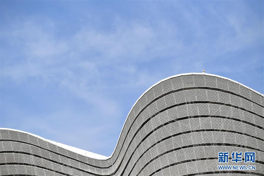 5月29日,工人在西安奧體中心游泳館施工。新華社記者張博文攝