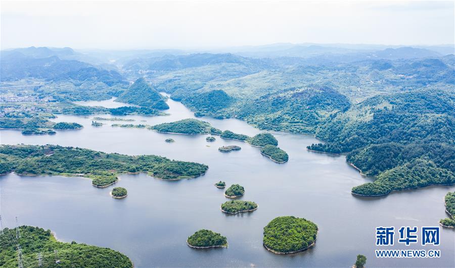 6月2日拍攝的貴陽(yáng)市阿哈湖國(guó)家濕地公園(無(wú)人機(jī)照片)。初夏時(shí)節(jié),貴州省貴陽(yáng)市阿哈湖國(guó)家濕地公園草木蒼翠,風(fēng)景如畫,吸引人們前來(lái)休閑游玩。新華社記者陶亮攝。