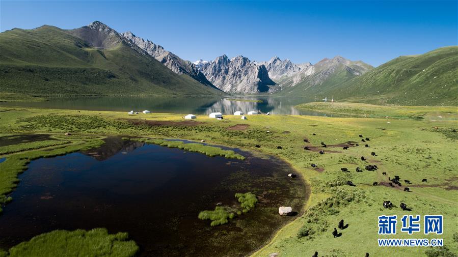 2019年7月8日拍攝的位于三江源地區(qū)的青海省果洛藏族自治州久治縣境內(nèi)的年保玉則風光(無人機照片)。6月2日,青海省生態(tài)環(huán)境廳發(fā)布《2019年青海省生態(tài)環(huán)境狀況公報》稱,青海省三江源地區(qū)境內(nèi)的長江、黃河、瀾滄江干流流域水質(zhì)優(yōu)良,植被覆蓋度呈增長趨勢,全省生態(tài)環(huán)境狀況總體保持穩(wěn)定。新華社記者吳剛攝。