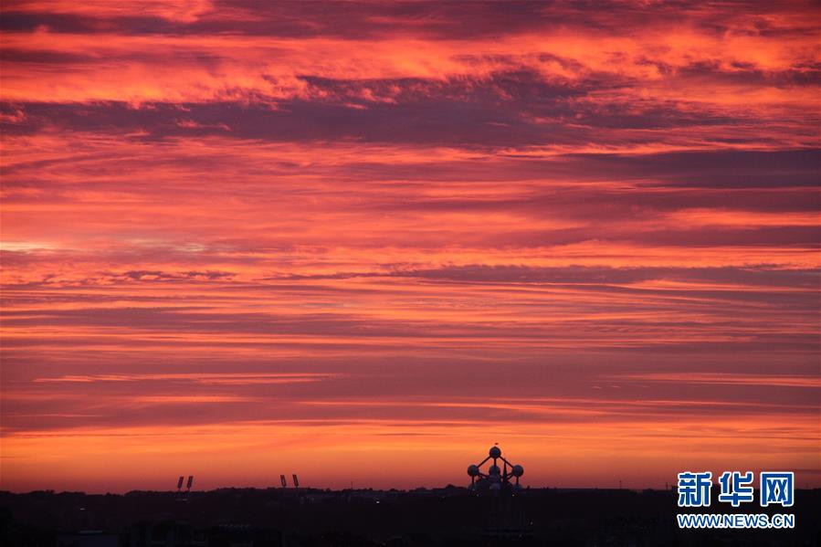 2020年5月22日黃昏時分,比利時首都布魯塞爾漫天的火燒云映襯著原子球塔。6月5日是第47個聯(lián)合國世界環(huán)境日,今年的主題為“關愛自然刻不容緩”。新華社記者鄭煥松攝。