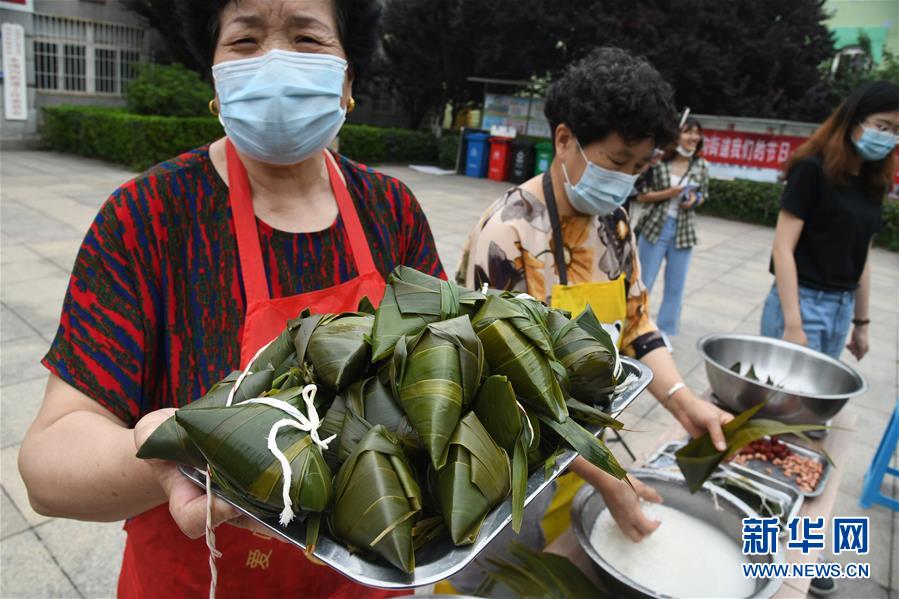 6月17日,水清溝街道居民在社區(qū)廣場上包粽子。當(dāng)日,青島市北區(qū)水清溝街道開展迎端午鄰里愛心傳遞進網(wǎng)格活動,居民通過包粽子、吃粽子、網(wǎng)上端午傳統(tǒng)文化課等形式傳遞鄰里愛心,傳承民俗文化。新華社記者 李紫恒 攝