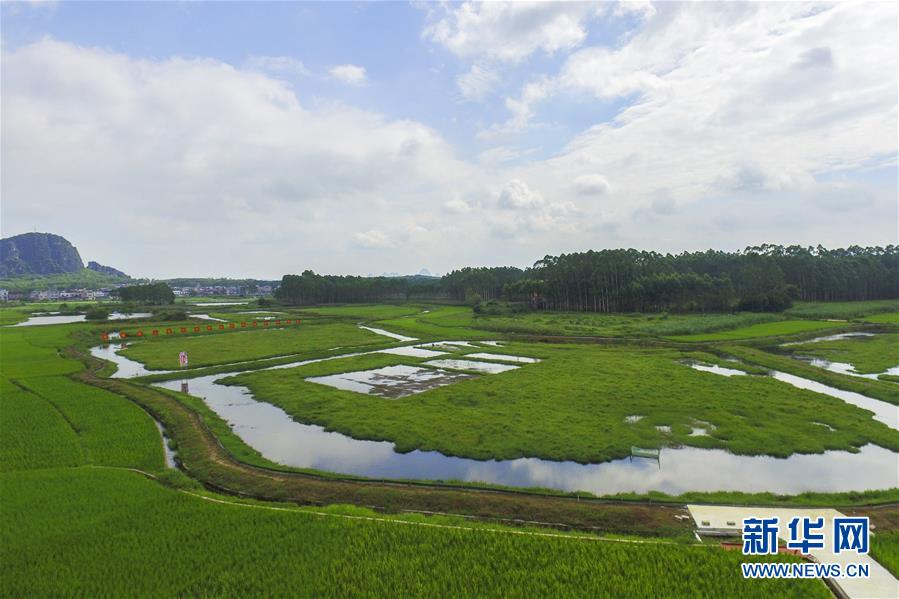 這是廣西武宣縣祿新鎮(zhèn)上堂村稻蝦輪作養(yǎng)殖示范基地(6月17日攝,無人機(jī)照片)。新華社記者 曹祎銘 攝