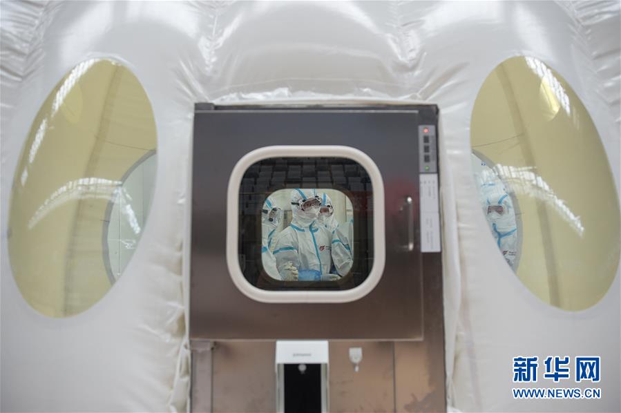 6月22日拍攝的建在北京大興體育中心綜合館的氣膜版“火眼”核酸檢測(cè)實(shí)驗(yàn)室。新華社記者彭子洋攝