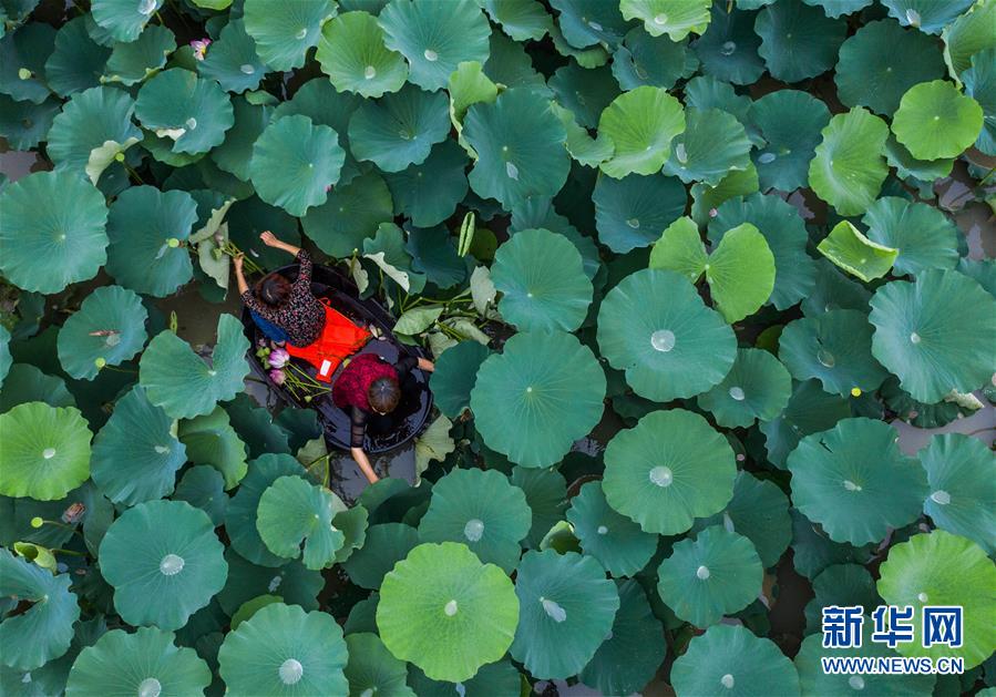 6月23日,東林鎮(zhèn)村民劃著菱桶采收荷花和蓮蓬(無人機照片)。當(dāng)日,浙江省湖州市東林鎮(zhèn)在泉心村荷花池舉辦“慶端午劃菱桶”趣味活動。村民們劃著菱桶在水面上你追我趕,同時采收荷花和蓮蓬,呈現(xiàn)出水鄉(xiāng)特有的端午節(jié)日氛圍。在河網(wǎng)密布的東林鎮(zhèn),菱桶是水鄉(xiāng)家家戶戶都有的一種傳統(tǒng)水上勞動工具,村民在捕魚、采菱、采荷時都要用到。新華社記者徐昱攝
