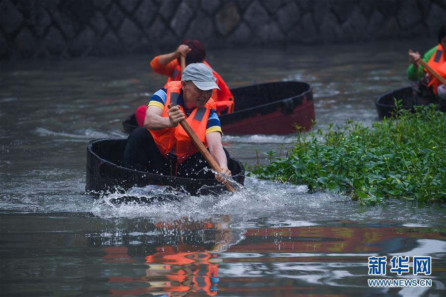 6月23日,東林鎮(zhèn)村民劃著菱桶采收荷花和蓮蓬。當(dāng)日,浙江省湖州市東林鎮(zhèn)在泉心村荷花池舉辦“慶端午劃菱桶”趣味活動。村民們劃著菱桶在水面上你追我趕,同時采收荷花和蓮蓬,呈現(xiàn)出水鄉(xiāng)特有的端午節(jié)日氛圍。在河網(wǎng)密布的東林鎮(zhèn),菱桶是水鄉(xiāng)家家戶戶都有的一種傳統(tǒng)水上勞動工具,村民在捕魚、采菱、采荷時都要用到。新華社記者徐昱攝