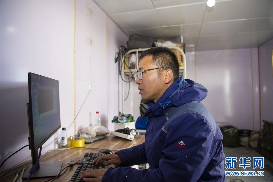 在中國科學院新疆天文臺慕士塔格觀測站,馮國杰打開軟件,調(diào)試設備(6月15日攝)。新華社記者胡虎虎攝