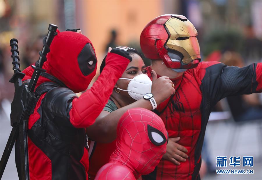6月27日,在美國紐約時報廣場,一名游客與角色扮演者合影。美國約翰斯·霍普金斯大學27日發(fā)布的新冠疫情最新統計數據顯示,截至美國東部時間27日16時35分(北京時間28日4時35分),美國累計新冠確診病例2500419例,累計死亡病例125434例。新華社記者王迎攝