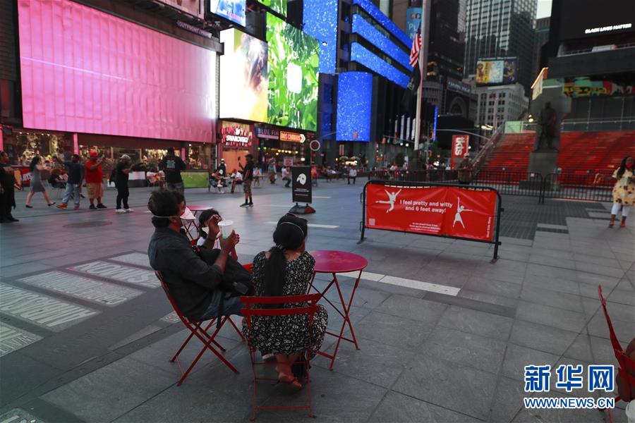 6月27日,人們在美國紐約時報廣場的公共休閑區(qū)休息。美國約翰斯·霍普金斯大學27日發(fā)布的新冠疫情最新統計數據顯示,截至美國東部時間27日16時35分(北京時間28日4時35分),美國累計新冠確診病例2500419例,累計死亡病例125434例。新華社記者王迎攝