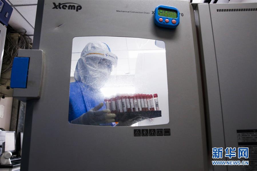 7月3日,中日友好醫(yī)院檢驗(yàn)科新冠核酸檢測(cè)實(shí)驗(yàn)室的檢驗(yàn)人員張?chǎng)稳〕鼋?jīng)過滅活的樣本。新華社記者張玉薇攝