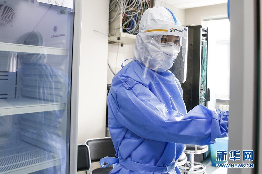 7月3日,中日友好醫(yī)院檢驗(yàn)科新冠核酸檢測(cè)實(shí)驗(yàn)室的檢驗(yàn)人員閆克芹在進(jìn)入污染區(qū)前穿戴防護(hù)裝備。新華社記者張玉薇攝