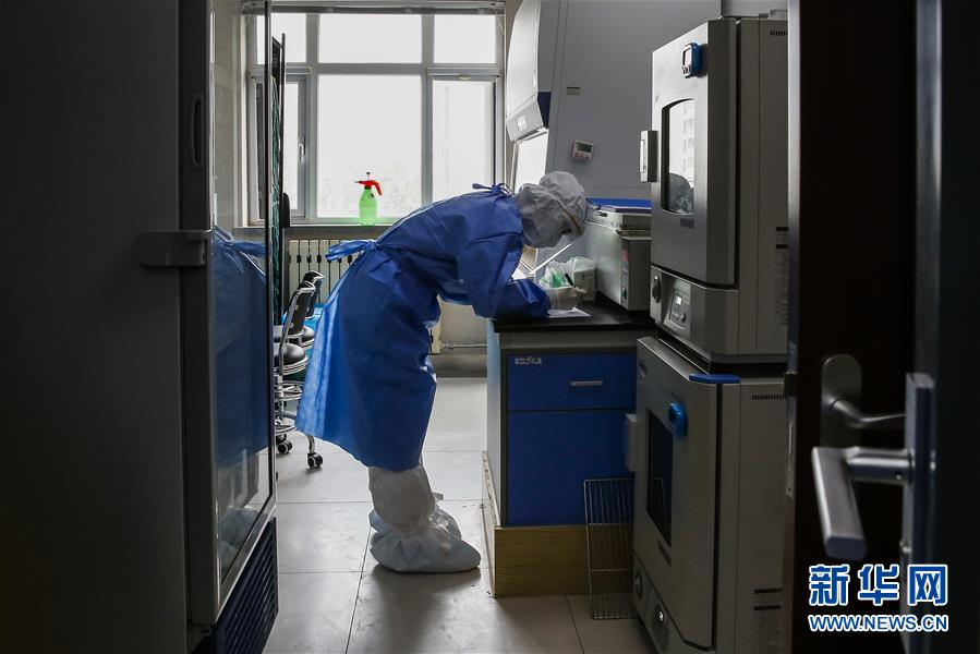7月3日,中日友好醫(yī)院檢驗(yàn)科新冠核酸檢測(cè)實(shí)驗(yàn)室的檢驗(yàn)人員張?chǎng)卧趯?shí)驗(yàn)室內(nèi)查看樣本。新華社記者張玉薇攝