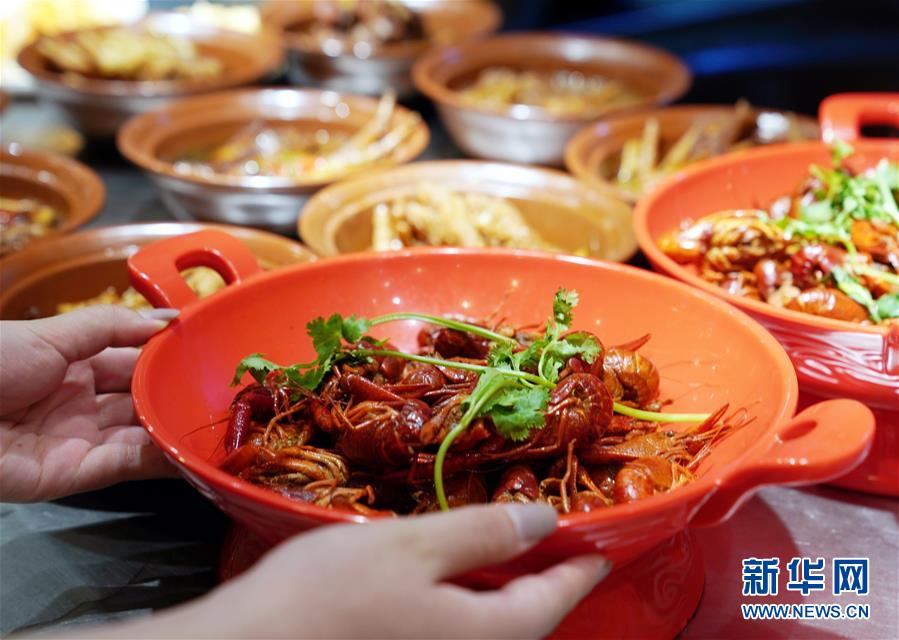 7月3日在上海豫園小吃城內(nèi)拍攝的小龍蝦菜肴。從7月第一個(gè)周末起,上海豫園原有的“豫園六點(diǎn)半”集市全面升級(jí),煥彩燈光、演藝活動(dòng)和花車(chē)集市全線更新,讓市民和游客在觀燈、觀人、觀演的沉浸式體驗(yàn)中,享受夏日特色的“食玩”樂(lè)趣。新華社記者 劉穎 攝