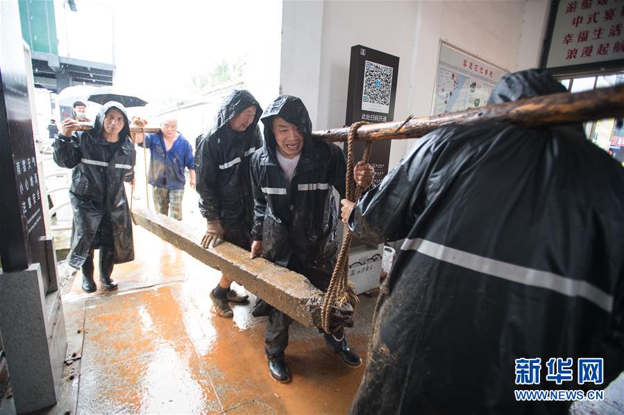 7月6日,工作人員在武漢龍王廟封堵閘口。記者6日從武漢市防汛抗旱指揮部辦公室獲悉,5日以來,武漢遭暴雨襲擊,全市多處路段漬水。至6日4時,長江漢口站超設(shè)防水位1.79米,漢江新溝站超警戒水位0.01米。鑒于當前水雨汛情和漬澇情況,武漢市從6日5時起,將排澇應急響應級別提升至Ⅱ級;從6時30分起,將防汛應急響應級別提升至Ⅱ級。新華社記者肖藝九攝