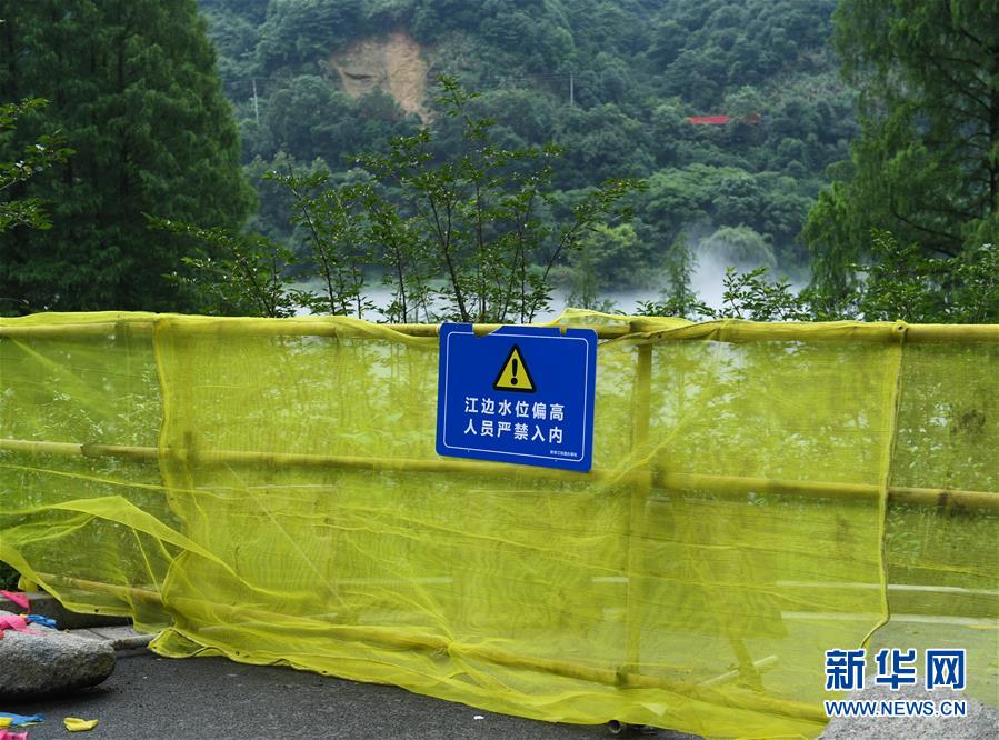 新安江畔的步道已被封閉(7月6日攝)。受連續(xù)強(qiáng)降雨影響,位于浙江建德的新安江水庫(kù)水位持續(xù)上漲。據(jù)浙江省水利廳發(fā)布的數(shù)據(jù),截至7月6日14時(shí),水庫(kù)水位上漲至106.54米,超汛限水位0.04米,且仍在上漲中。為確保水庫(kù)防洪安全、合理利用水資源,新安江水庫(kù)預(yù)計(jì)于7月7日開啟泄洪閘泄洪。新華社記者翁忻旸攝