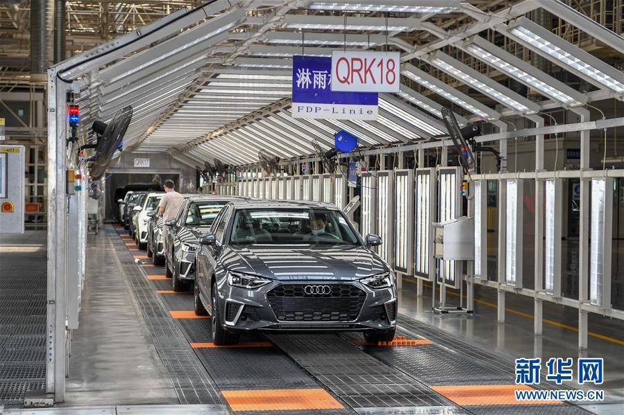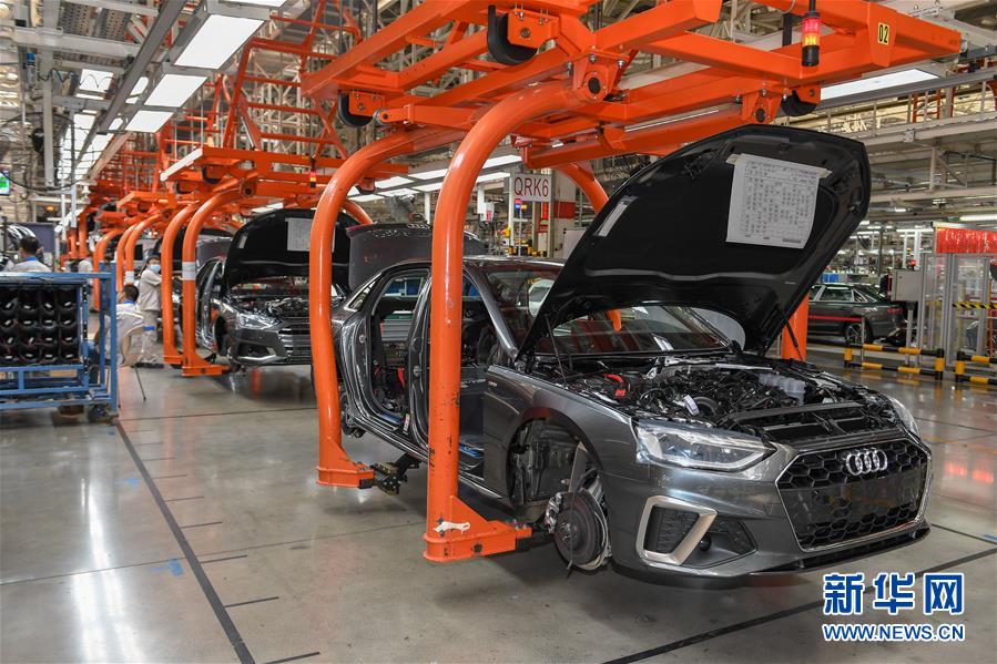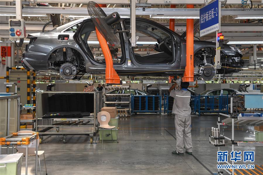 在一汽-大眾長春基地總裝車間,工人在裝配車輛(6月19日攝)。中國第一汽車集團披露,截至6月30日,集團上半年共計生產整車162.23萬輛,同比增長1.5%;銷售整車163.09萬輛,同比增長2.3%。新華社記者張楠攝