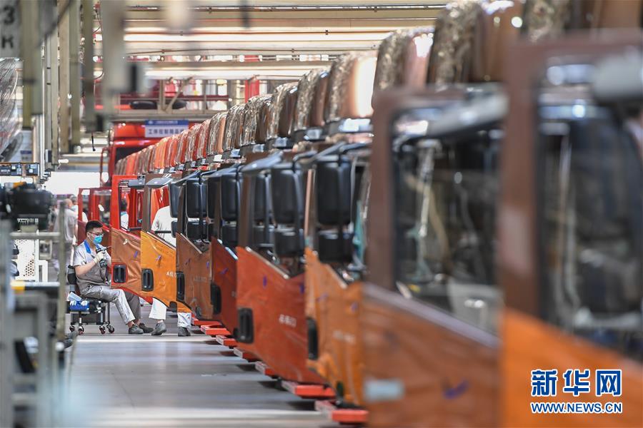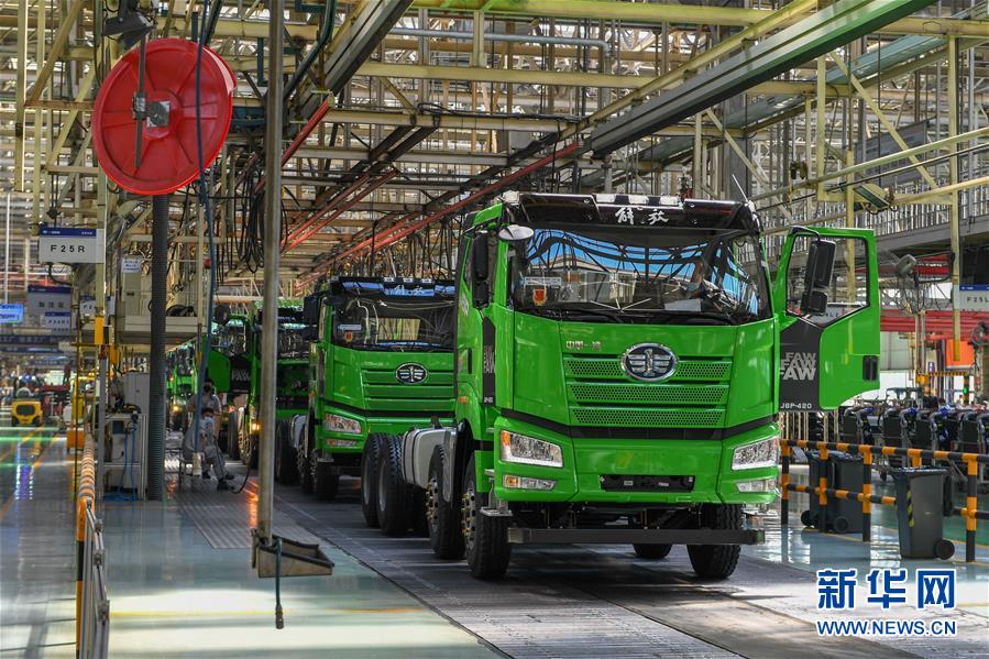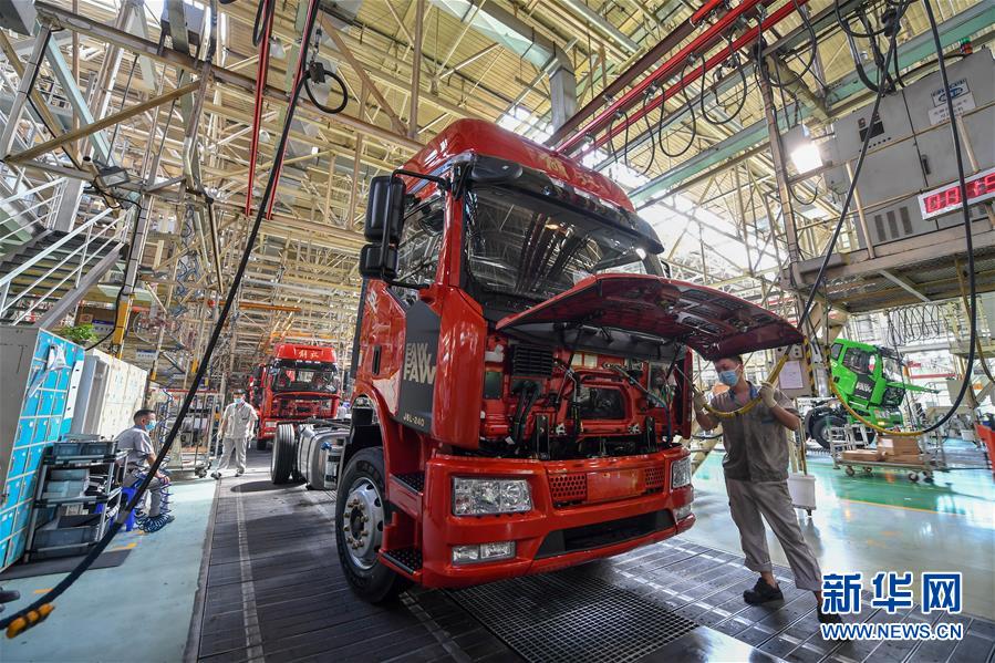 在位于長春市的一汽解放總裝車間,工人在裝配車輛(6月19日攝)。中國第一汽車集團披露,截至6月30日,集團上半年共計生產整車162.23萬輛,同比增長1.5%;銷售整車163.09萬輛,同比增長2.3%。新華社記者張楠攝