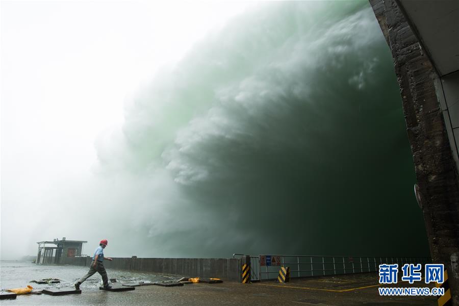 7月7日,新安江電廠工作人員從開啟7孔泄洪的新安江水庫壩底經(jīng)過。受持續(xù)降水影響,浙江新安江水庫水位持續(xù)快速上升。繼當日10時開啟3孔、12時開啟5孔泄洪后,新安江水庫于16時增加到7孔泄洪。新安江水庫是華東地區(qū)最大的水庫,在錢塘江流域的防洪度汛中起到關(guān)鍵作用。新華社記者翁忻旸攝