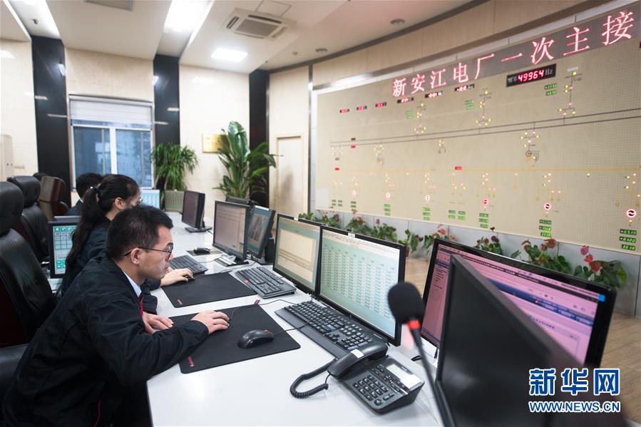 7月7日,新安江電廠工作人員在壩體內(nèi)部中央控制室工作。受持續(xù)降水影響,浙江新安江水庫水位持續(xù)快速上升。繼當(dāng)日10時(shí)開啟3孔、12時(shí)開啟5孔泄洪后,新安江水庫于16時(shí)增加到7孔泄洪。新安江水庫是華東地區(qū)最大的水庫,在錢塘江流域的防洪度汛中起到關(guān)鍵作用。新華社記者翁忻旸攝