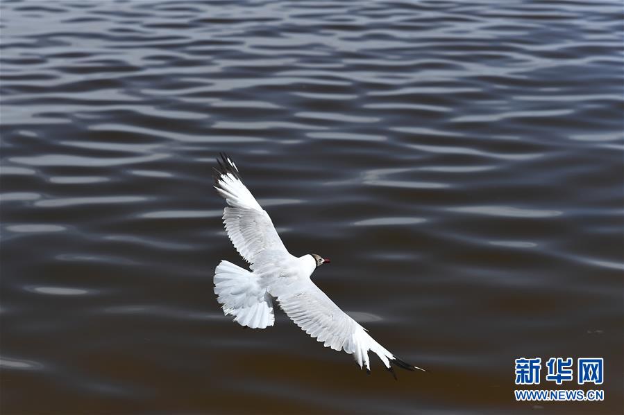 7月10日,一只棕頭鷗從青海湖湖面上飛過。盛夏時節(jié),被譽(yù)為“中國最美湖泊”的青海湖畔景色宜人,藍(lán)天、白云、湖水與草原組成一幅壯美的畫卷。新華社記者 張宏祥 攝