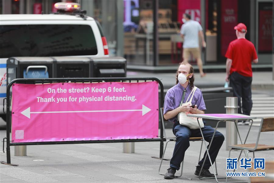 7月23日,一名男子在美國紐約時報(bào)廣場小憩。美國約翰斯·霍普金斯大學(xué)23日發(fā)布的新冠疫情最新統(tǒng)計(jì)數(shù)據(jù)顯示,美國累計(jì)確診病例超過400萬例。數(shù)據(jù)顯示,截至美國東部時間23日15時34分(北京時間24日3時34分),美國累計(jì)確診病例4007859例,累計(jì)死亡病例143846例。新華社記者王迎攝