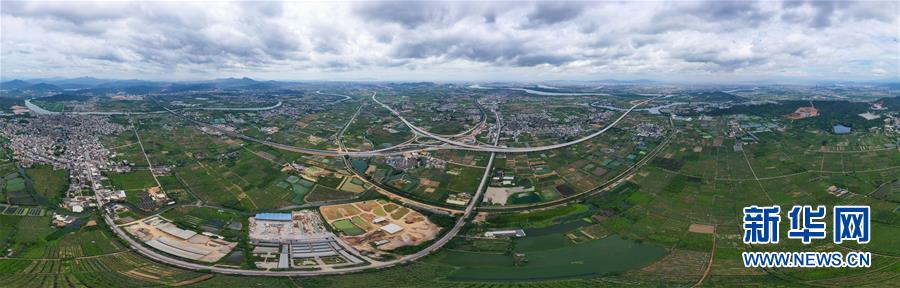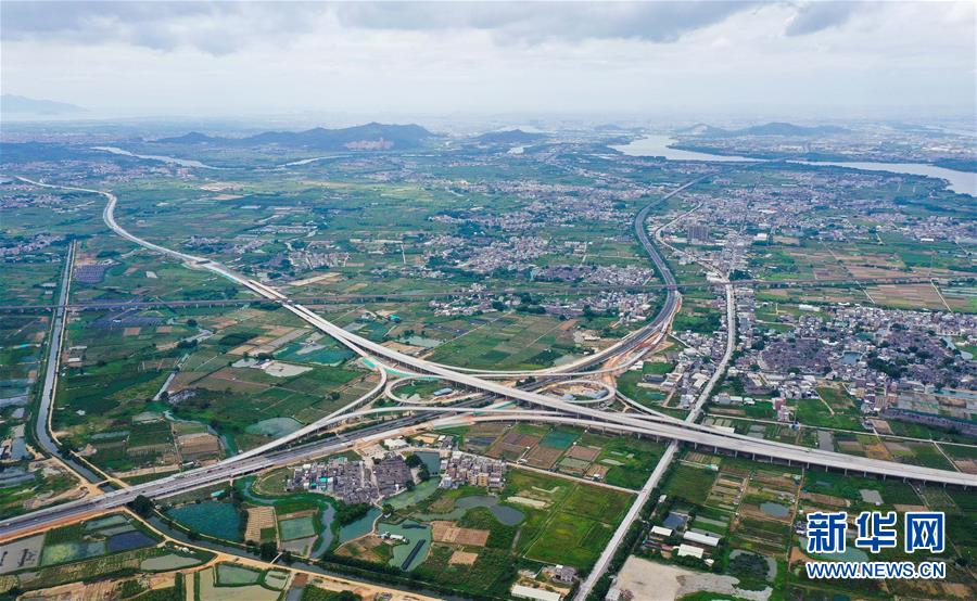這是已經(jīng)建設(shè)完成的潮汕環(huán)線(xiàn)高速公路上北互通立交,沈海高速公路從該互通立交下面穿過(guò)(無(wú)人機(jī)照片,7月31日攝)。新華社記者劉大偉攝