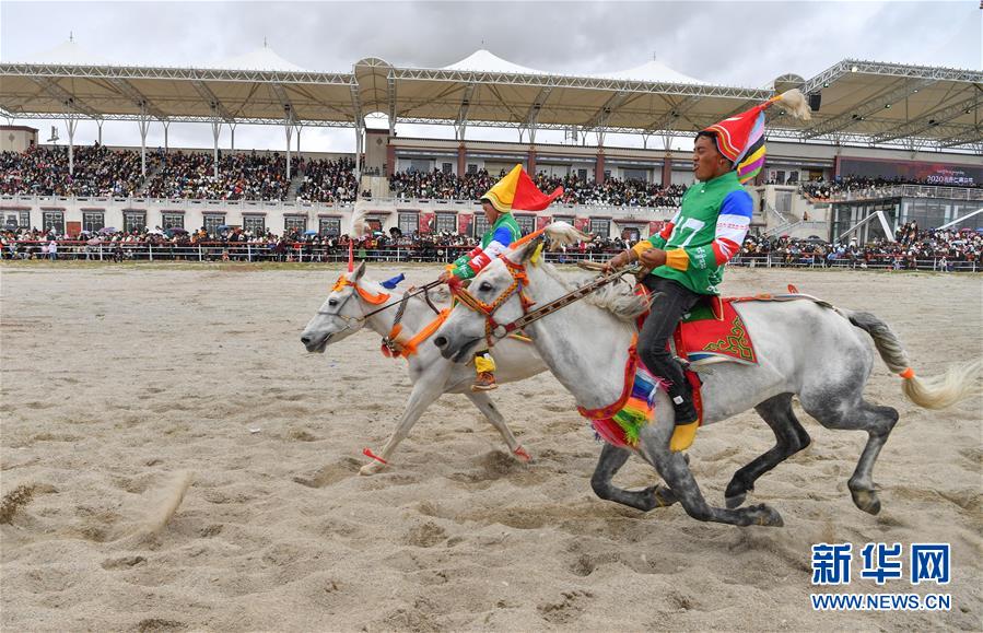 8月10日,騎手馳騁在當雄縣賽馬場。新華社記者普布扎西攝。